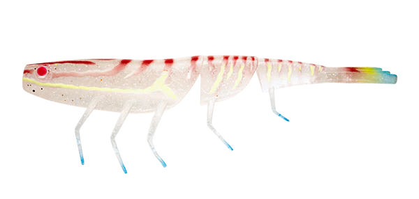 The Bait Junkie Prawn has been developed to mimic a prawn’s natural movements and is now available in 4 different sizes. The three segment body design aids in a natural sink, where the tail can splay and produce a natural gliding sink back to the bottom. The forward-facing legs derive from the 295 Flick’s tail design and have been adjusted to produce a subtle shimmy action on the retrieve to emulate the natural quivering movement of prawn’s legs.